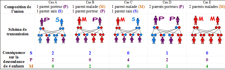 Le tableau ci-dessous montre les différents cas pouvant être rencontrés pour une polypose liée à MutYH.